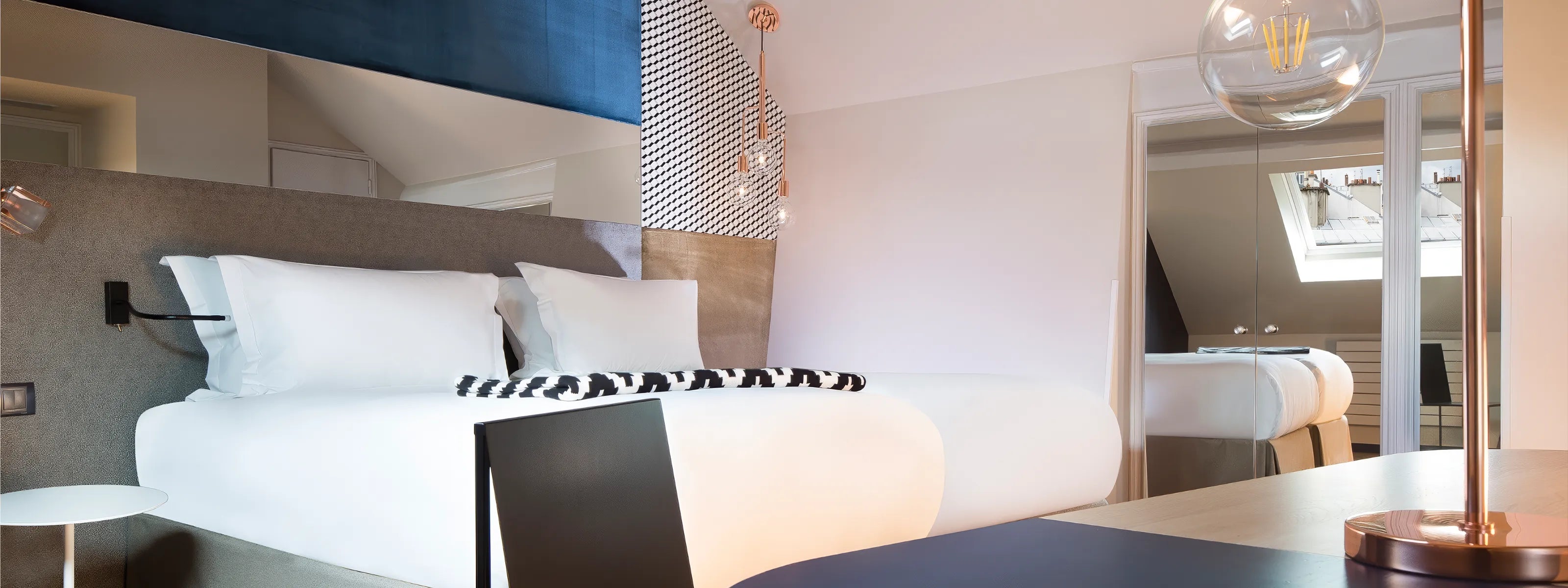 With its very Parisian charm, the Duette hotel has chosen its neighborhood well to express its character: nestled in the hollow of one of the rare pedestrian streets of the capital, this boutique hotel is a unique and somewhat hidden address.