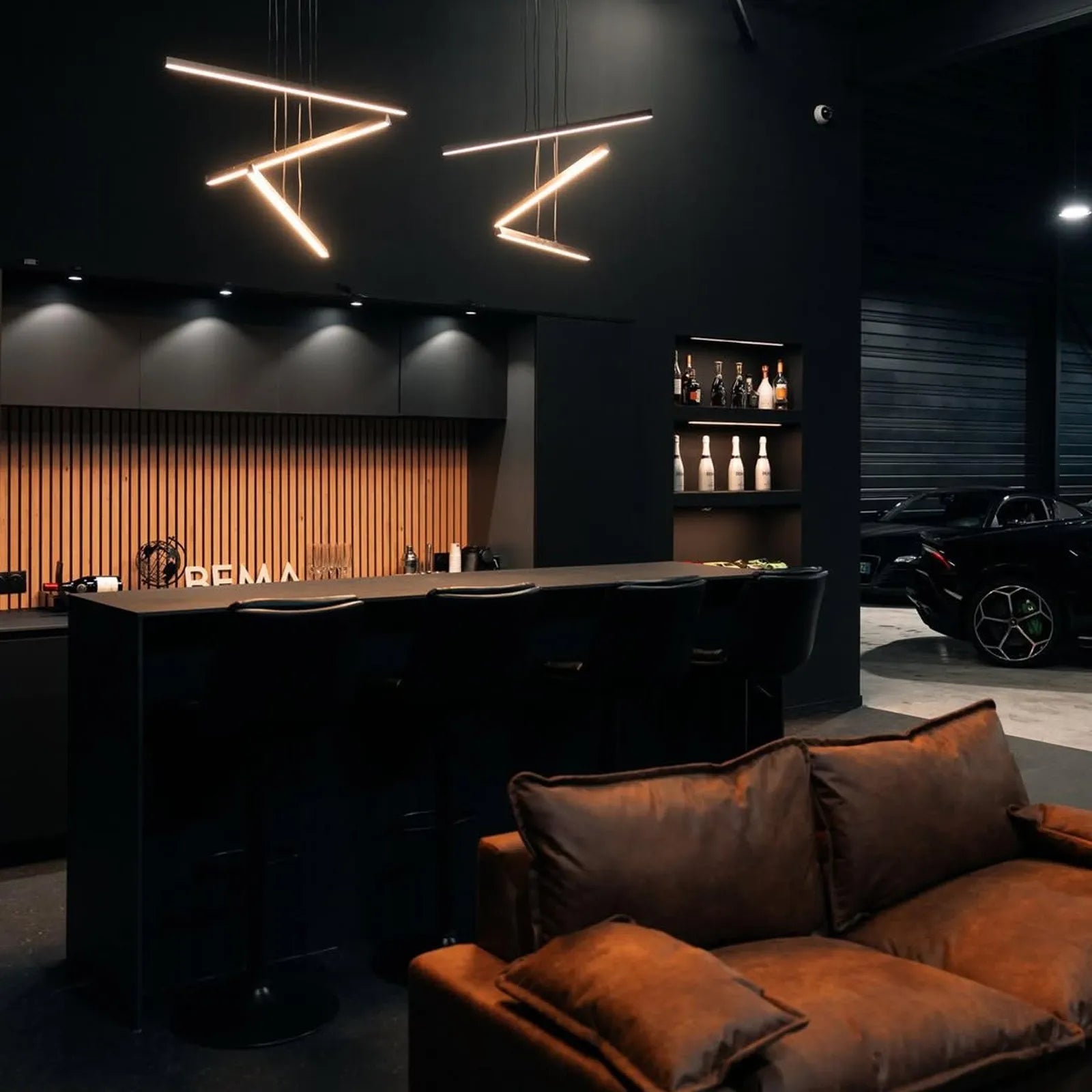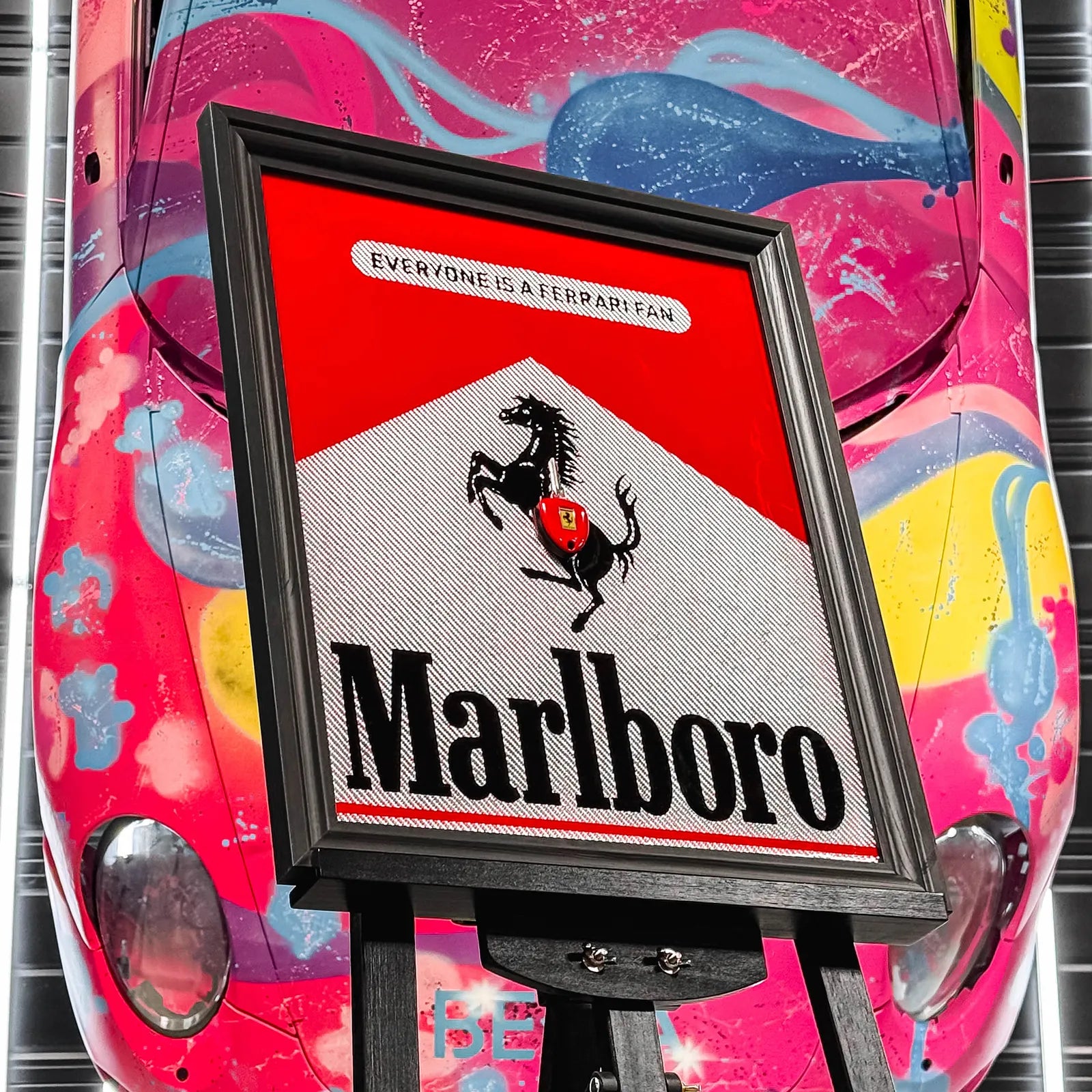Above the cars, a monumental fresco bears the phrase "V12 is the therapy you need" , symbolizing the emotion and excellence that resonate in each model on display. The showroom's atmosphere immerses you in the world of exceptional automobiles, where each vehicle tells a story.
